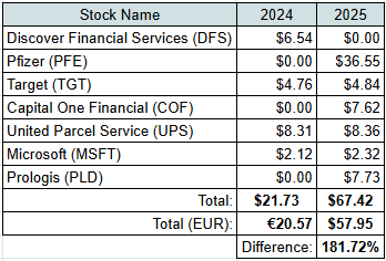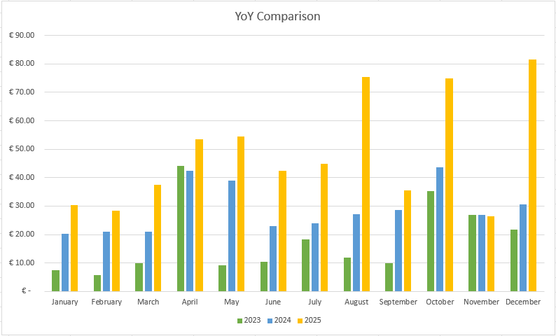 I managed to finish the year with my strongest month ever in terms of passive income. My original goal for 2025 was to receive €500 in passive income. I ended up comfortably exceeding it, finishing the year with a total of €585.