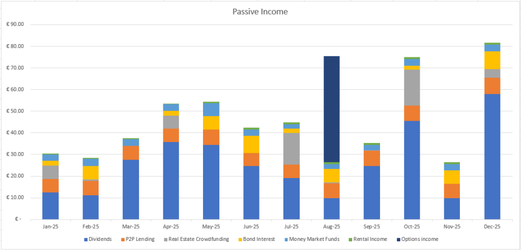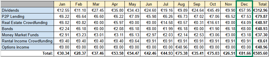 After adding everything up, our portfolio generated €81.66 of passive income for December: